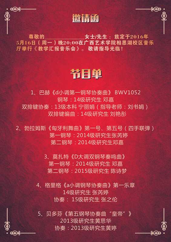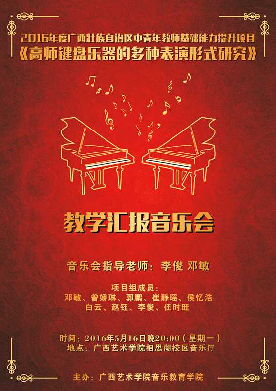 【演艺信息】williamhill威廉希尔《高师键盘乐器的多种表演形式研究》教学汇报音乐会 来源:williamhill威廉希尔 作者: 发布时间:2016-05-15 00:00:00 浏览次数: 次 【字体:小 大】 《高师键盘乐器的多种表演形式研究》教学汇报音乐会 时间:2016年5月16日(星期一)20:00 地点:williamhill威廉希尔官网相思湖校区音乐厅 欢迎您的光临! 分享到: 【打印正文】