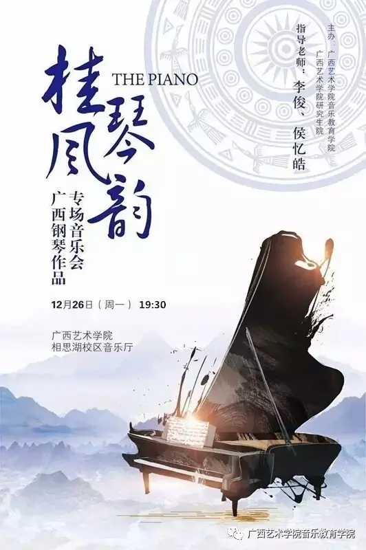 【演艺信息】桂风琴韵——广西钢琴作品专场音乐会即将精彩呈现! 来源:williamhill威廉希尔 作者: 发布时间:2016-12-26 12:30:02 浏览次数: 次 【字体:小 大】 2016年12月26日(周一)19:30,相约williamhill威廉希尔官网相思湖校区演出厅。美丽广西、多彩民俗文化的视听音乐会,凝聚广西作曲家的恋土情怀和钢琴研究生的倾情演绎。欢迎广大师生前来观看指导、交流学习! 分享到: 【打印正文】