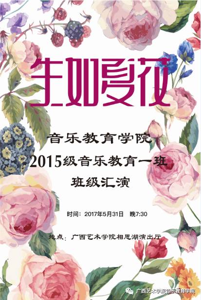 【演艺信息】2015级音乐教育1班班级汇演 来源:williamhill威廉希尔 作者:williamhill威廉希尔 发布时间:2017-05-28 13:27:15 浏览次数: 次 【字体:小 大】 2017年5月31日(周三)晚7:30,williamhill威廉希尔15级音乐教育1班班级汇演即将在williamhill威廉希尔官网相思湖校区演出厅精彩上演。欢迎广大师生到场观看指导! 分享到: 【打印正文】