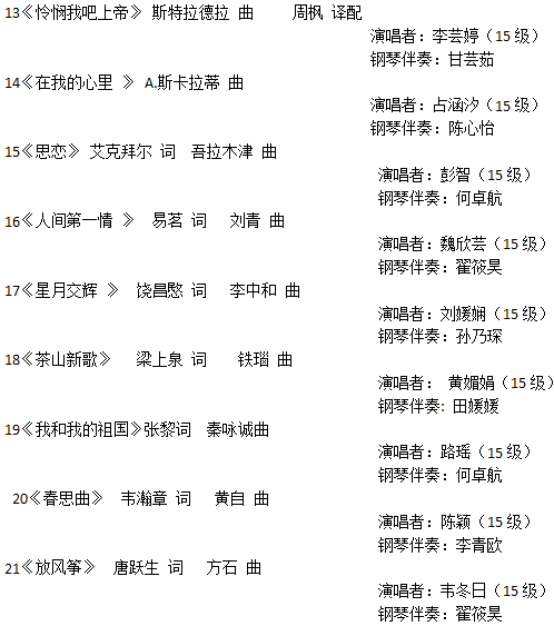【演艺信息】williamhill威廉希尔韦巧慧副教授声乐教学观摩会 来源:williamhill威廉希尔 作者:williamhill威廉希尔 发布时间:2017-06-20 13:30:23 浏览次数: 次 【字体:小 大】 2017年6月22日(星期四)19:30,williamhill威廉希尔韦巧慧副教授声乐教学观摩会即将在相思湖校区演出厅精彩上演,欢迎广大师生到场观看指导! 节目单 欢迎您的光临! 分享到: 【打印正文】